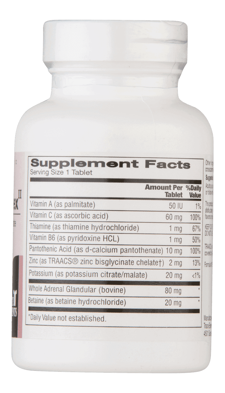 Adrenal Complex supplements that contain a high concentration of lyophilised adrenal tissue concentrate in combination with vitamins and patented chelated minerals known to have a synergistic or enhancing effect.