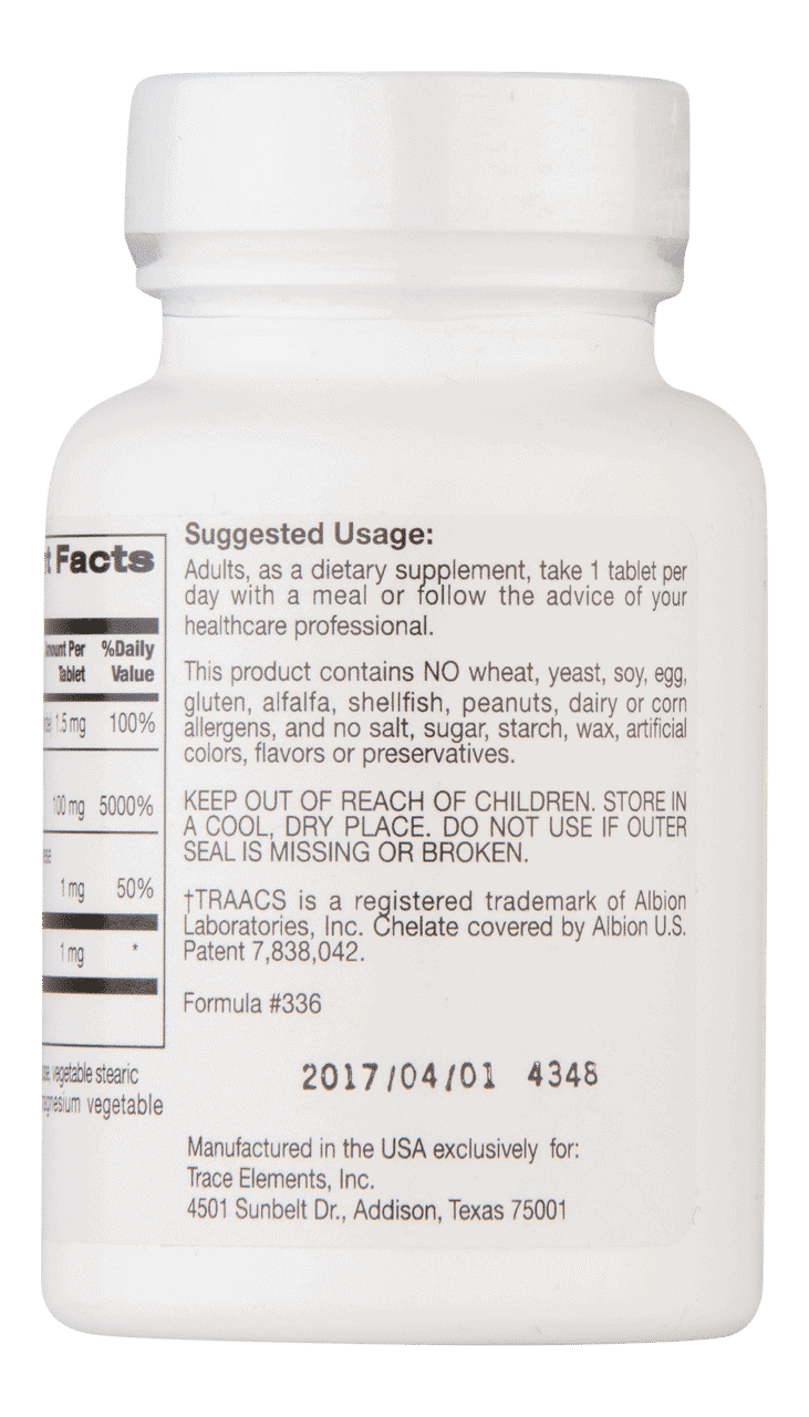 | Manganese (as TRAACS® manganese bisglycinate chelate)† | 1 mg | |
