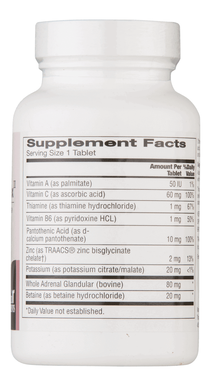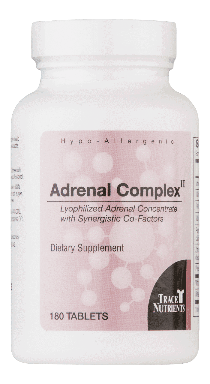 Adrenal ComplexII contains a high concentration of lyophilized adrenal tissue concentrate in combination with vitamins and patented chelated minerals known to have a synergistic or enhancing effect.