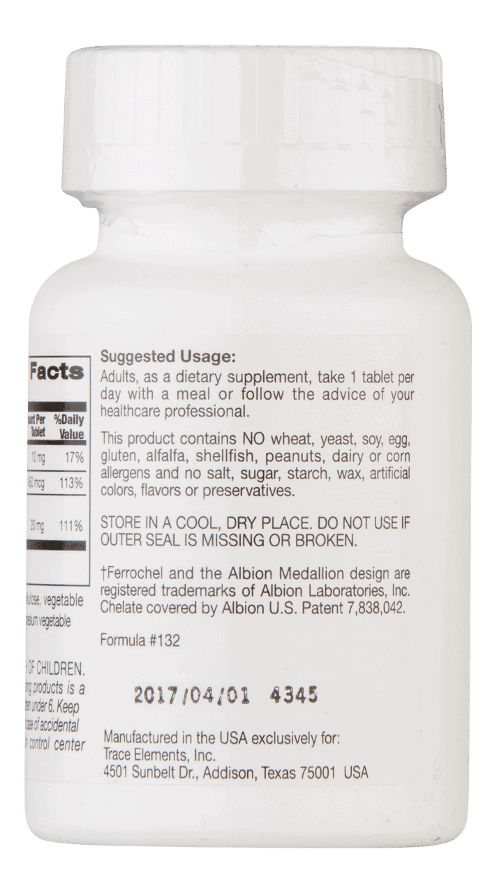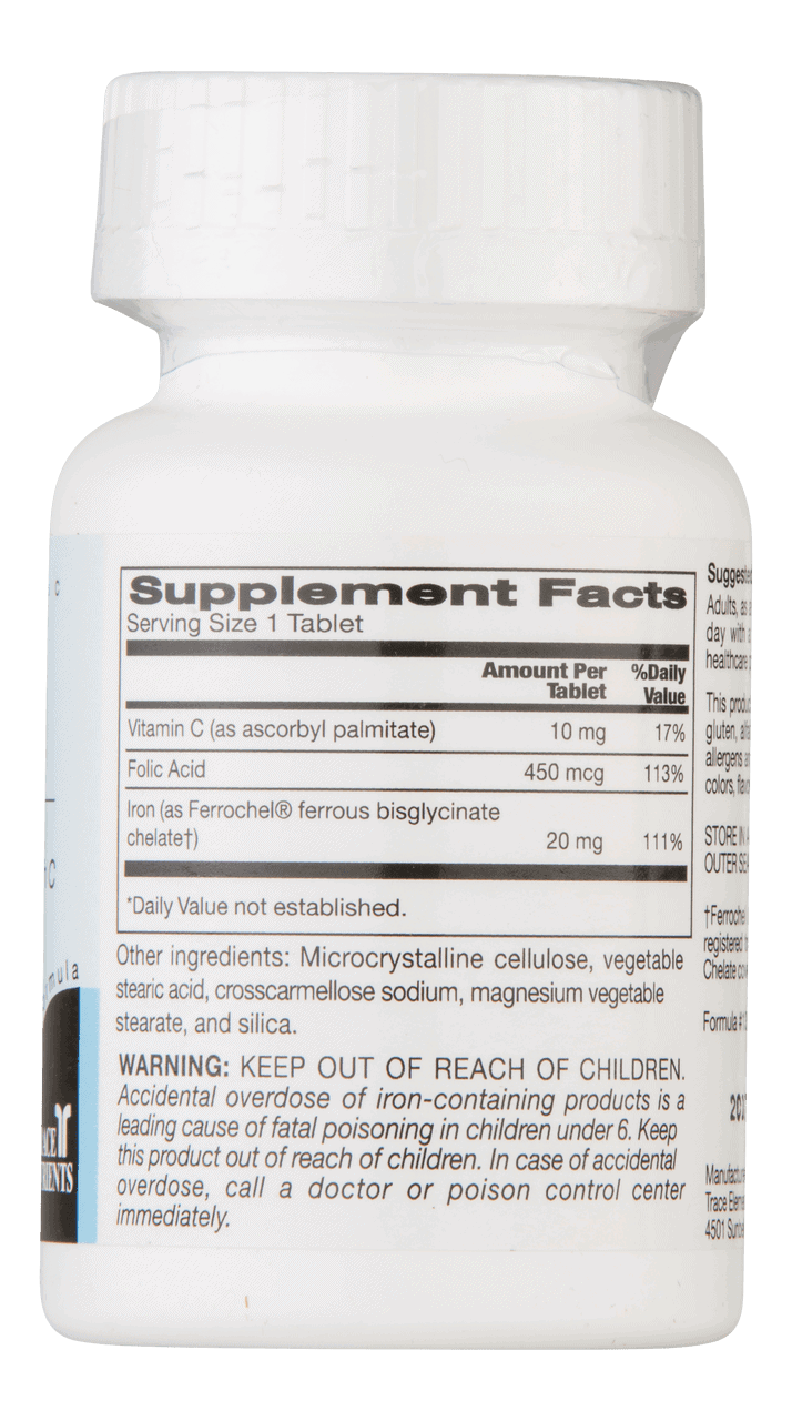 Hypo-Allergenic Iron Bisglycinate Chelate with Folic Acid and Vitamin C.