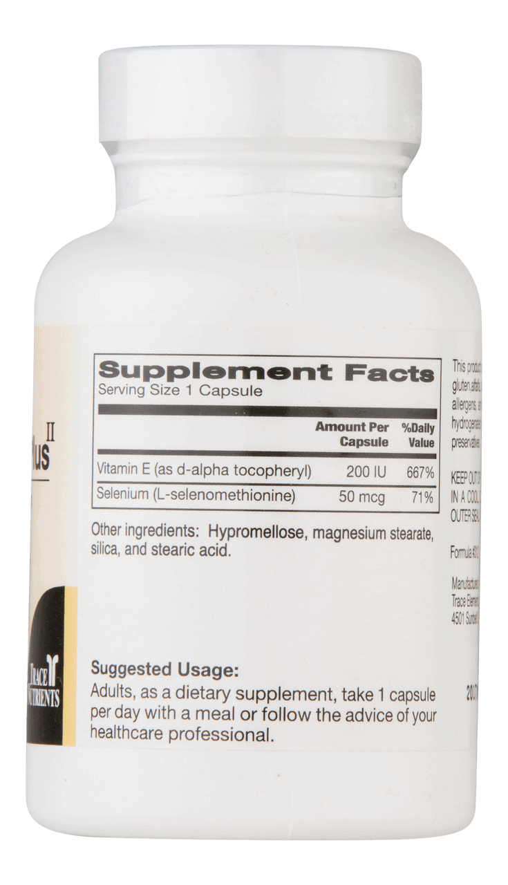 Vitamin E PlusII is a high potency Vitamin E supplement that contains natural d-alpha tocopheryl and selenium (added as an absorptive and metabolic synergist.