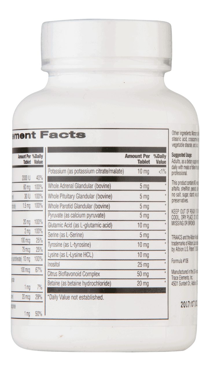 * Sourced from lyophilized glandular tissue concentrate, which is processed at below freezing temperature to insure maximum availablity of biologically active nutrients.